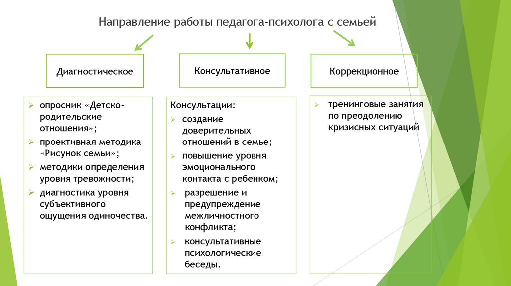 Направление работы педагога-психолога с семьейДиагностическое