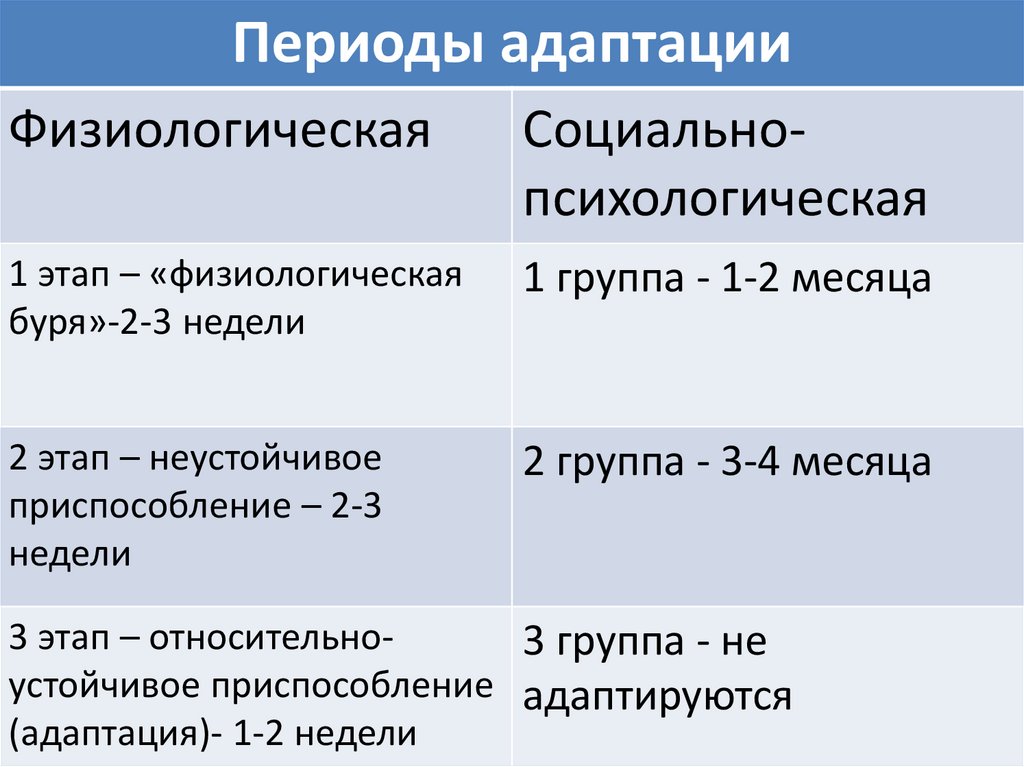 Периоды адаптацииФизиологическая
