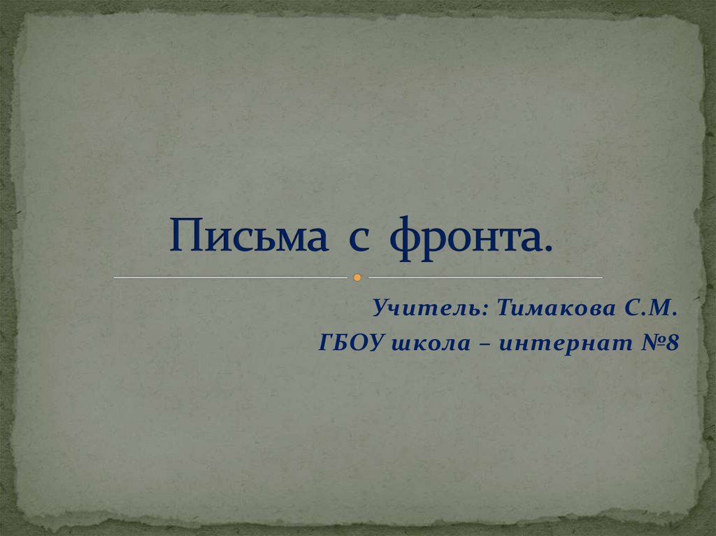 Учитель: Тимакова С.М.ГБОУ школа – интернат №8
