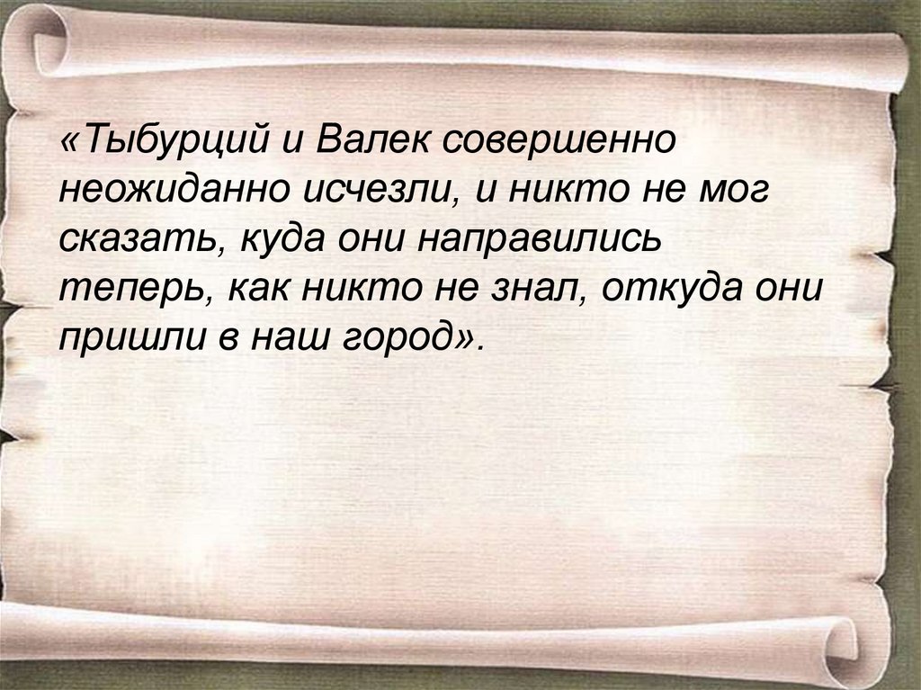 «Тыбурций и Валек совершеннонеожиданно исчезли, и никто не мог