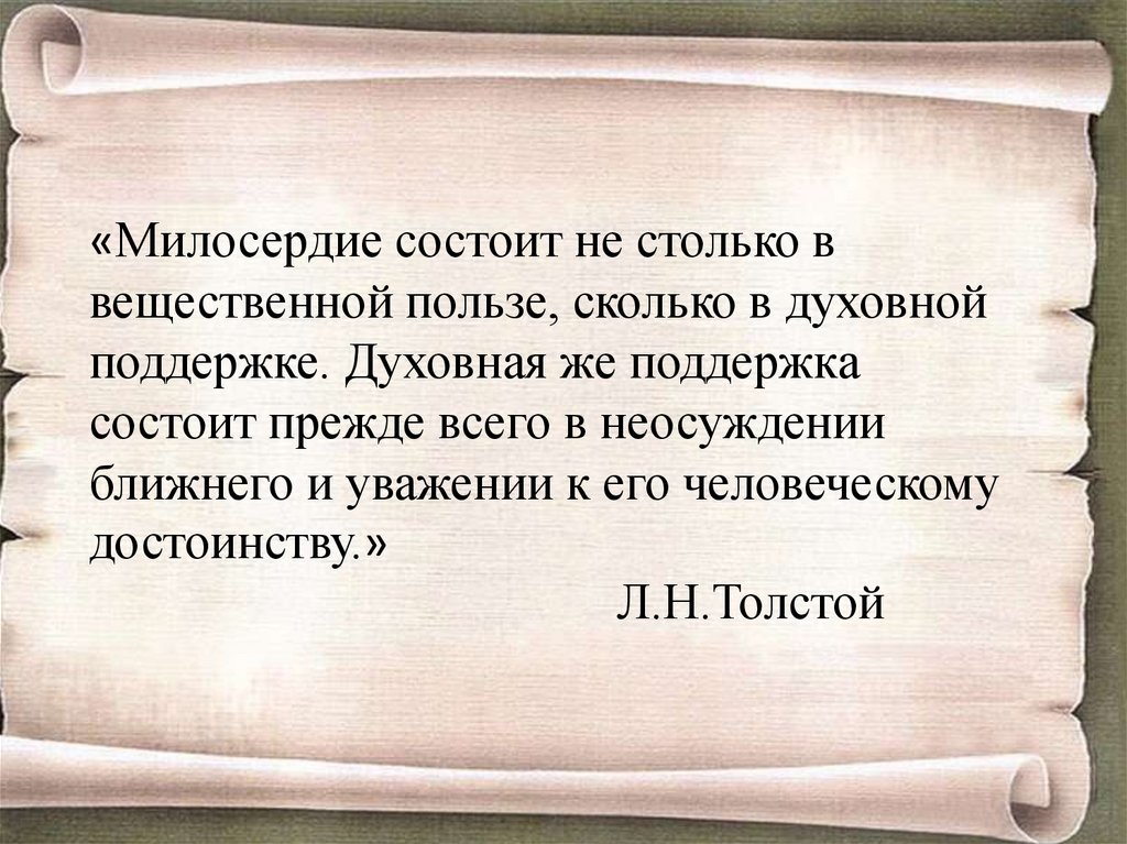 «Милосердие состоит не столько ввещественной пользе, сколько в духовной