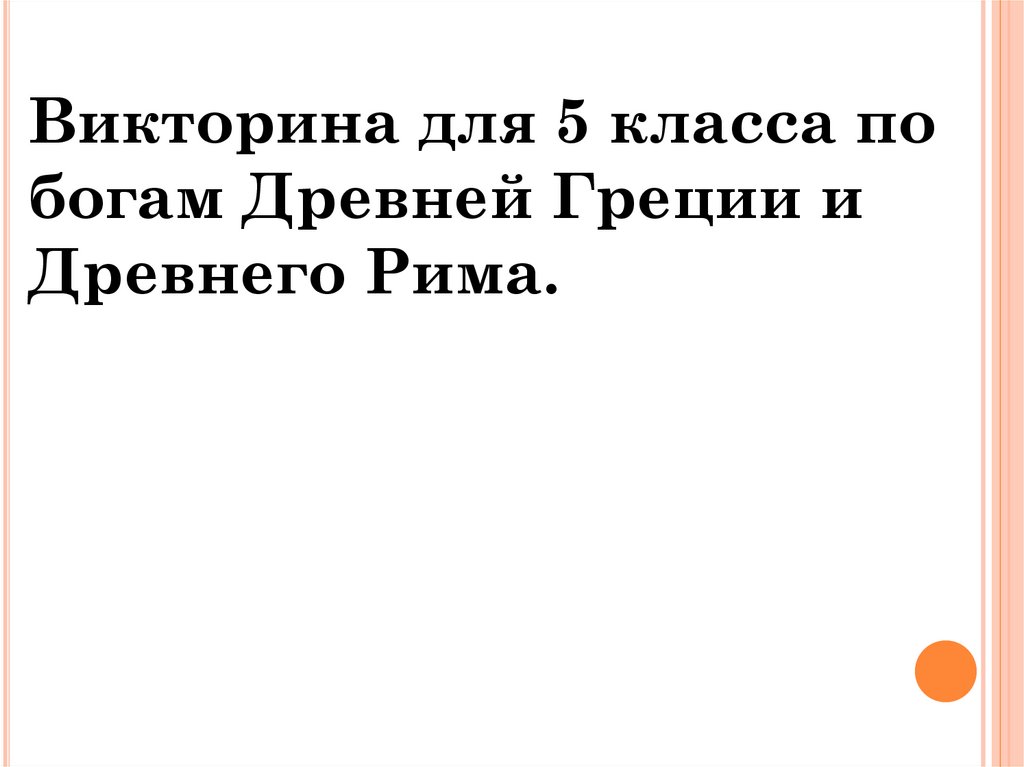 Викторина для 5 класса по богам Древней Греции и Древнего Рима
