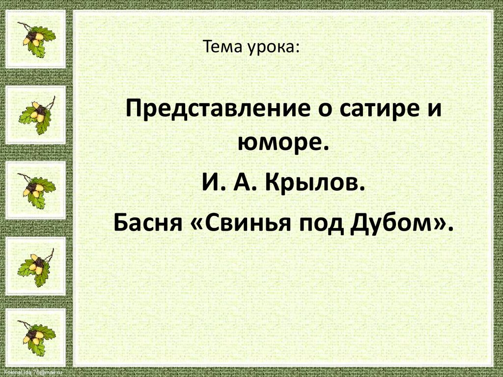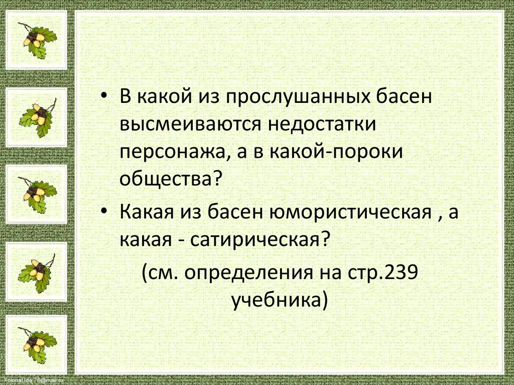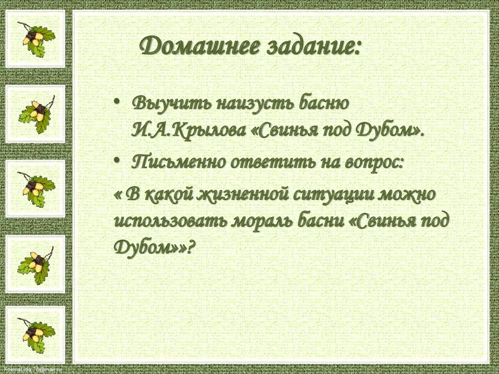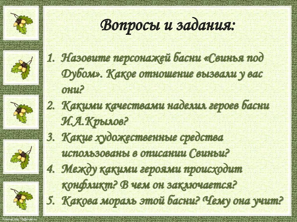 Вопросы и задания:1. Назовите персонажей басни «Свинья под