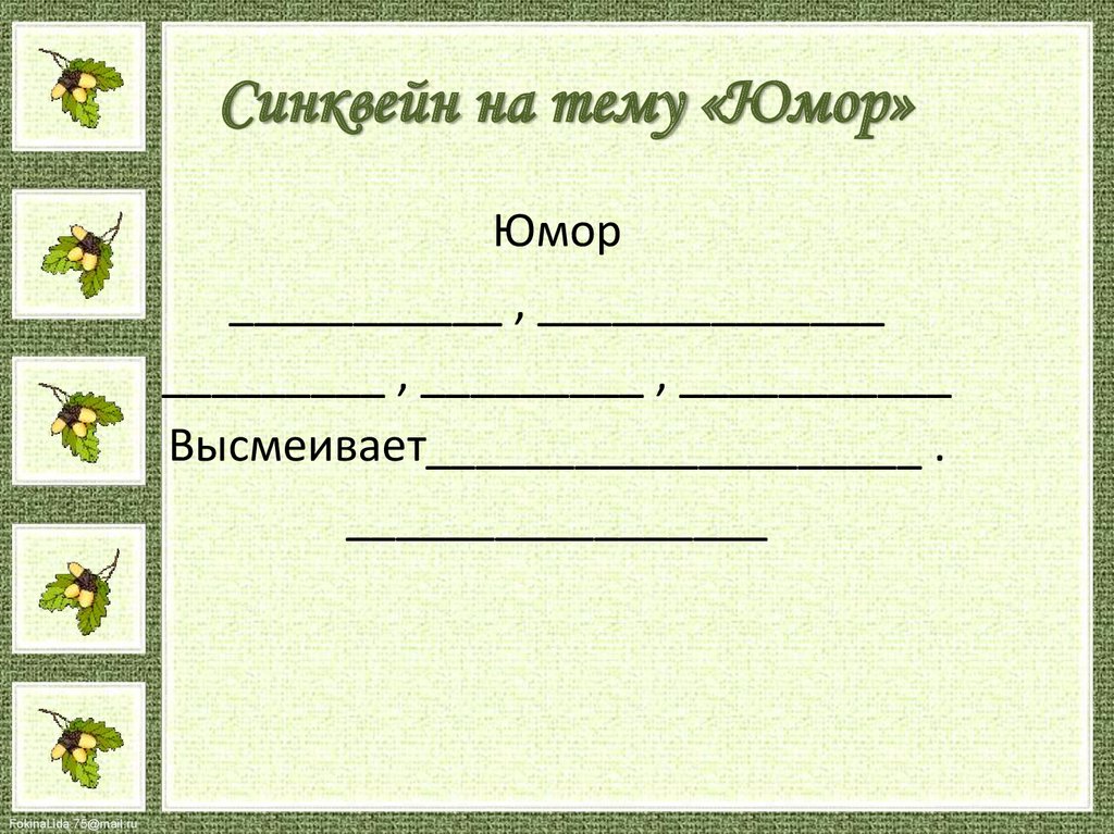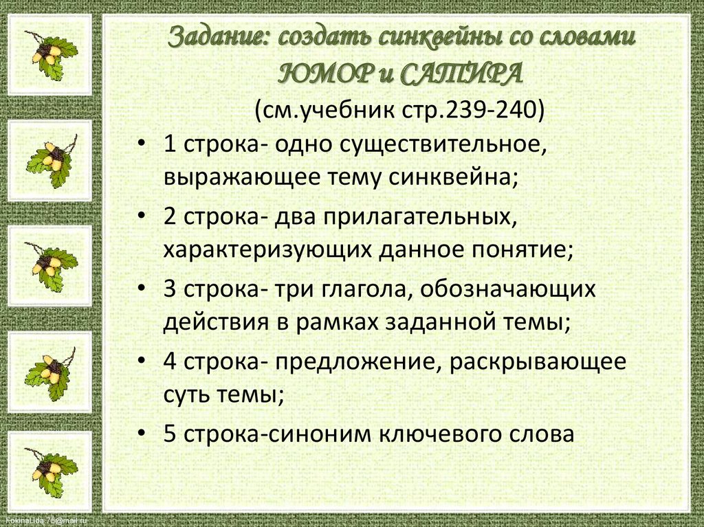 Задание: создать синквейны со словамиЮМОР и САТИРА