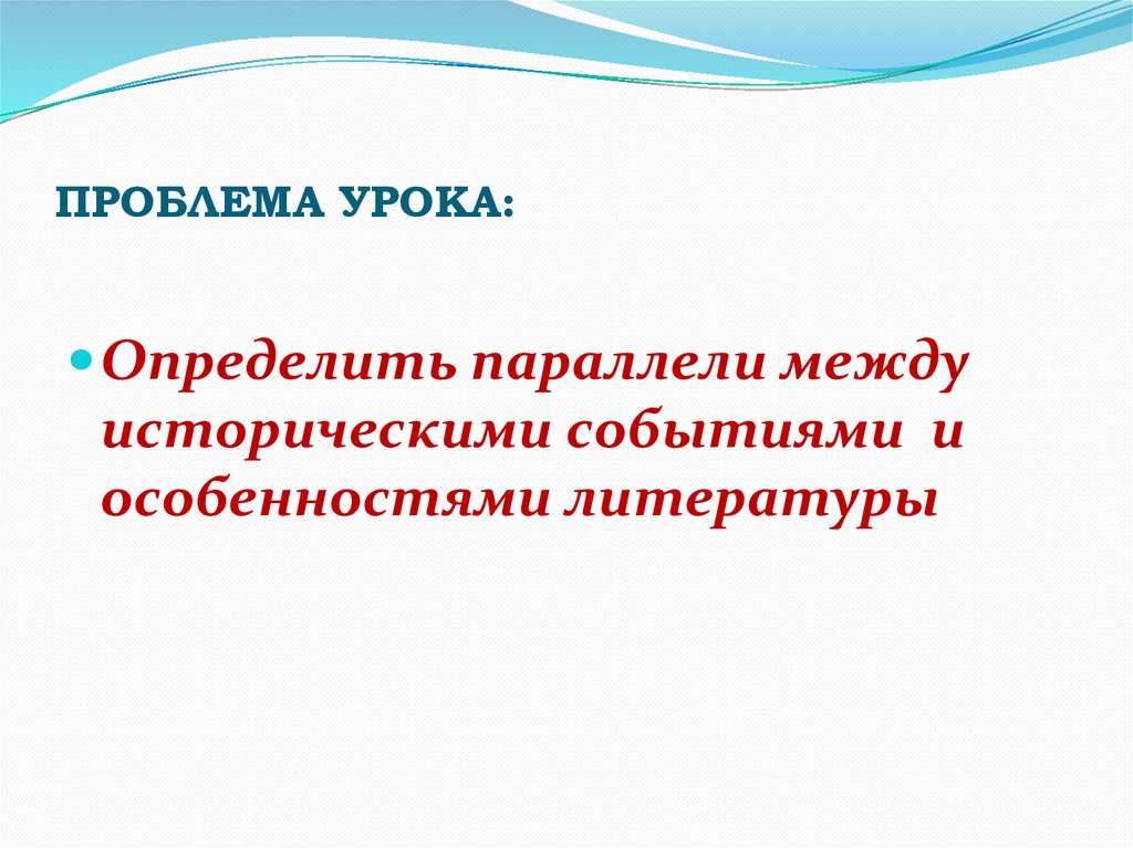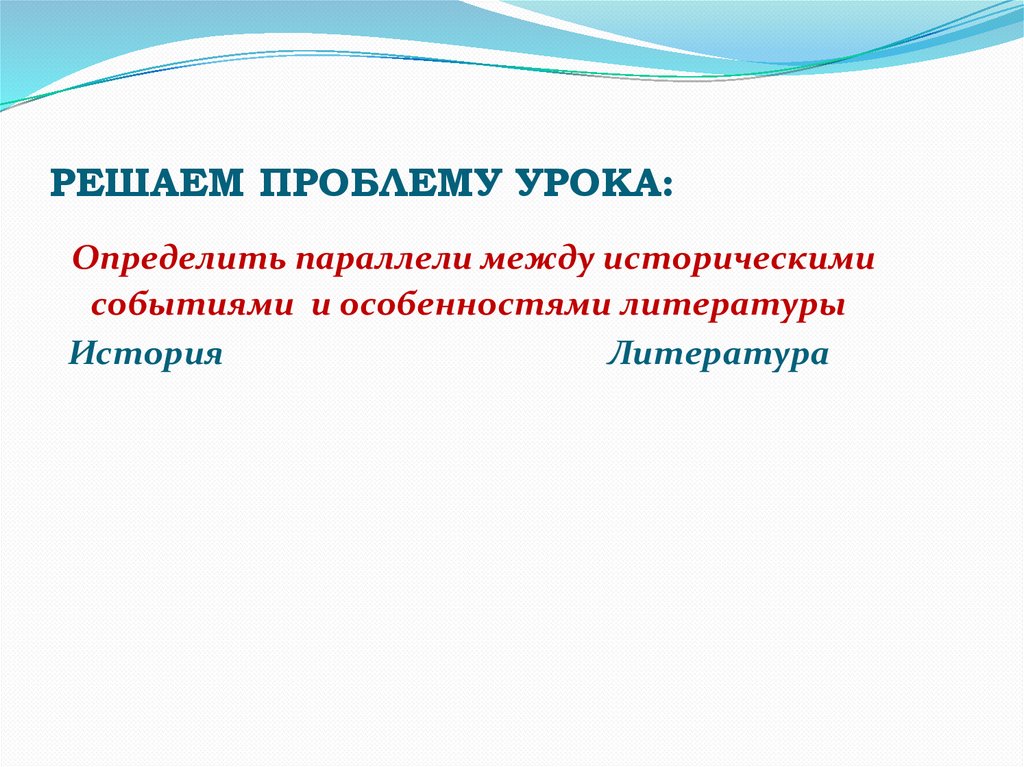 ПРОБЛЕМА УРОКА:Определить параллели между