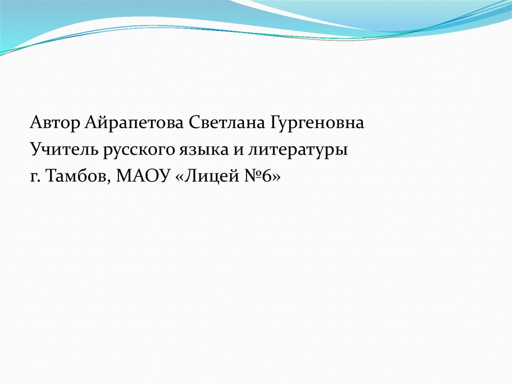 Автор Айрапетова Светлана ГургеновнаУчитель русского языка и литературы
