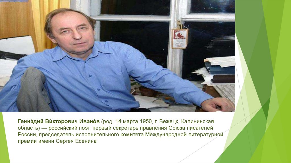 Генна́дий Ви́кторович Ивано́в (род. 14 марта 1950, г. Бежецк, Калининскаяобласть) — российский поэт, первый секретарь правления Союза писателей