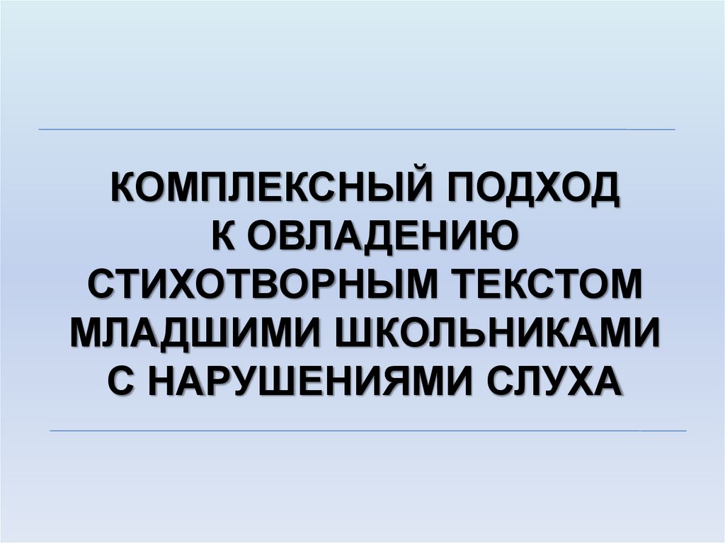 Комплексный подход к овладению стихотворным текстом младшими школьниками с нарушениями слуха