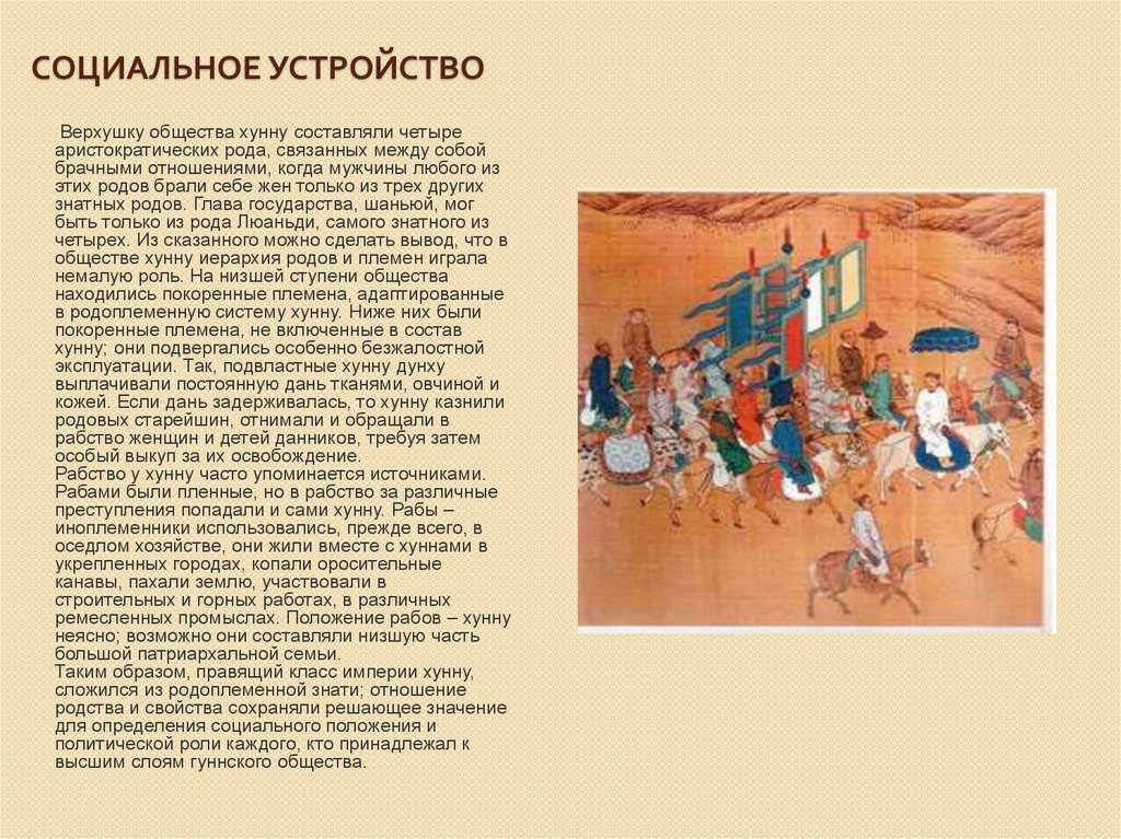 СОЦИАЛЬНОЕ УСТРОЙСТВОВерхушку общества хунну составляли четыре