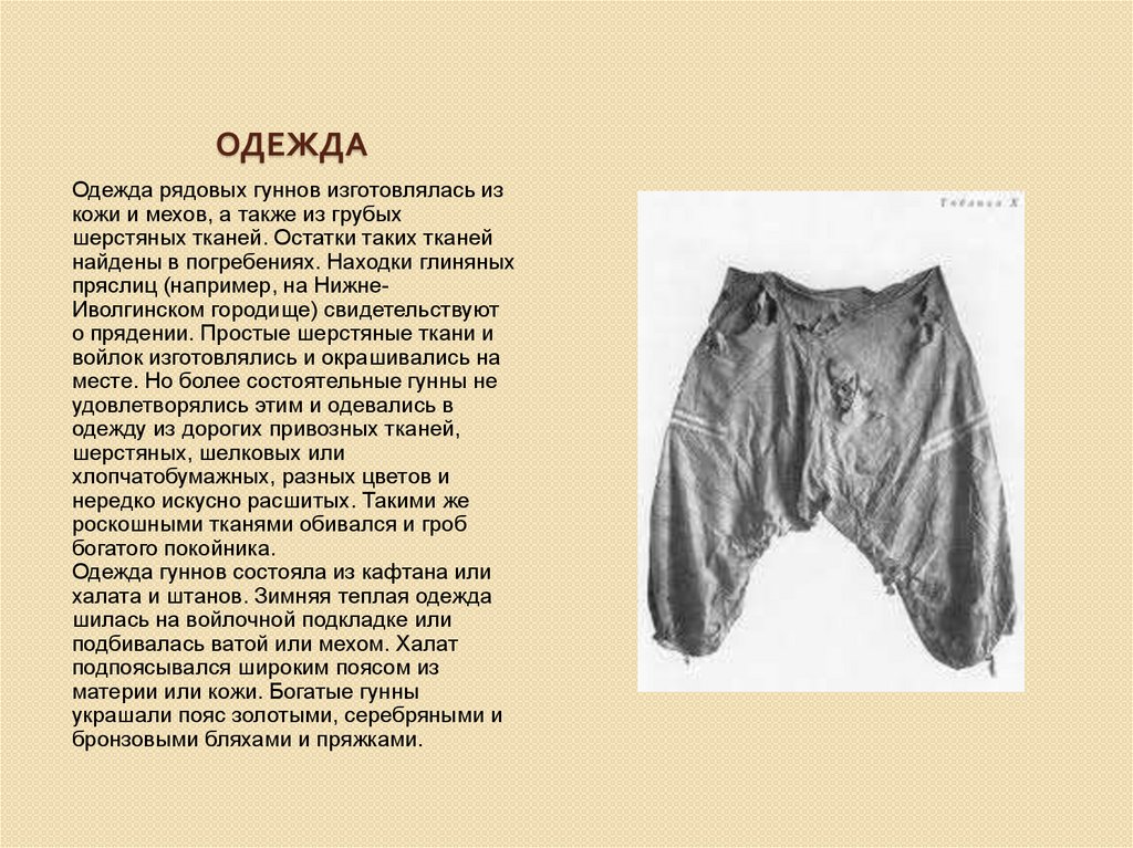 ОДЕЖДАОдежда рядовых гуннов изготовлялась из