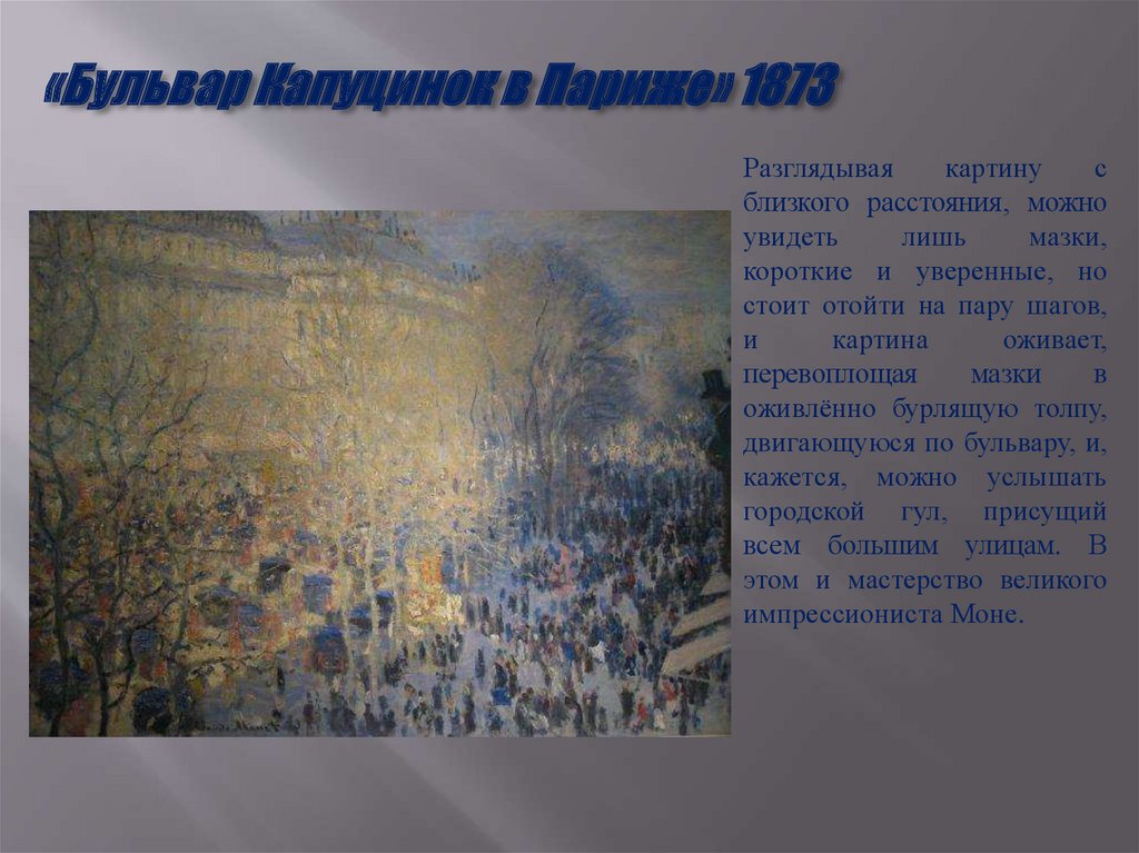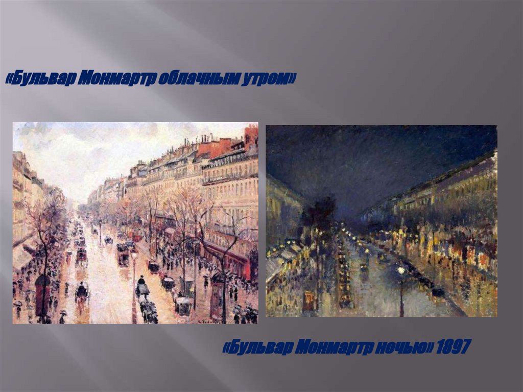 «Бульвар Монмартр облачным утром»«Бульвар Монмартр ночью» 1897