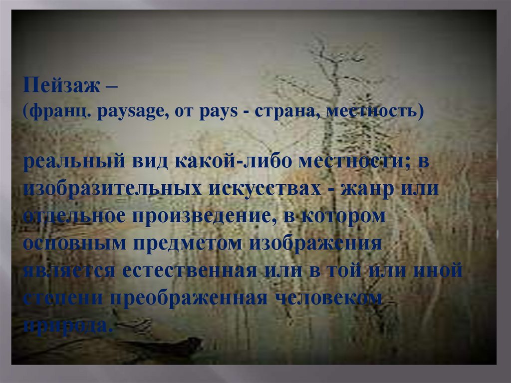 Пейзаж –(франц. paysage, от pays - страна, местность)