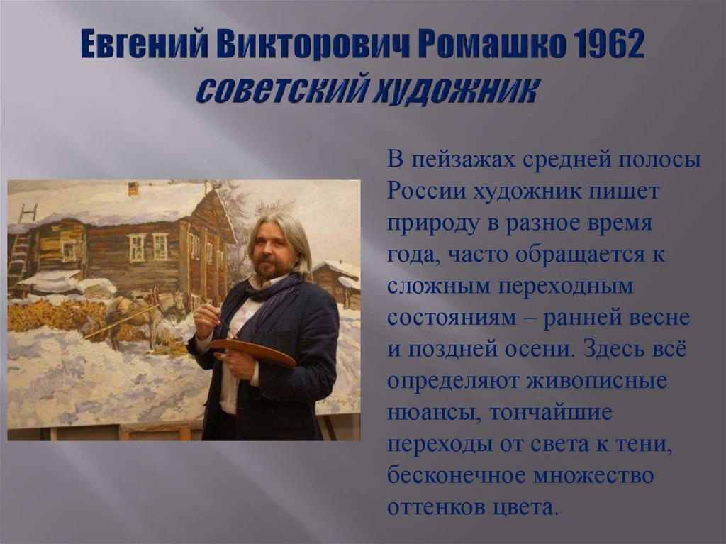 В пейзажах средней полосыРоссии художник пишет