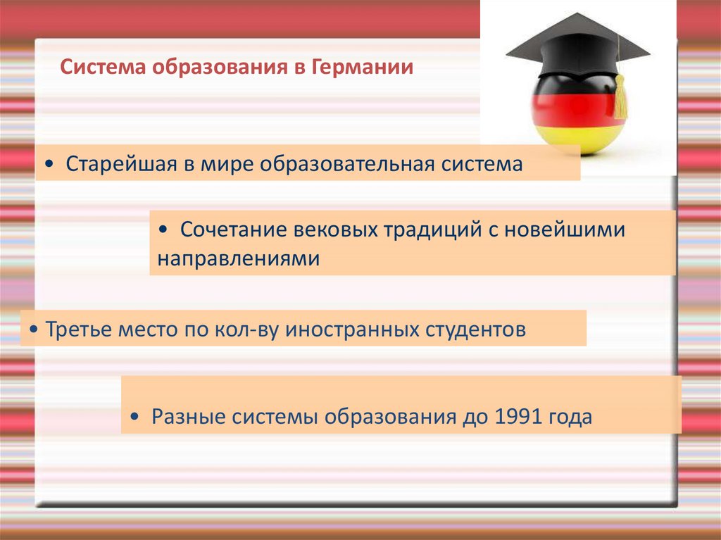 Система образования в Германии• Старейшая в мире образовательная система