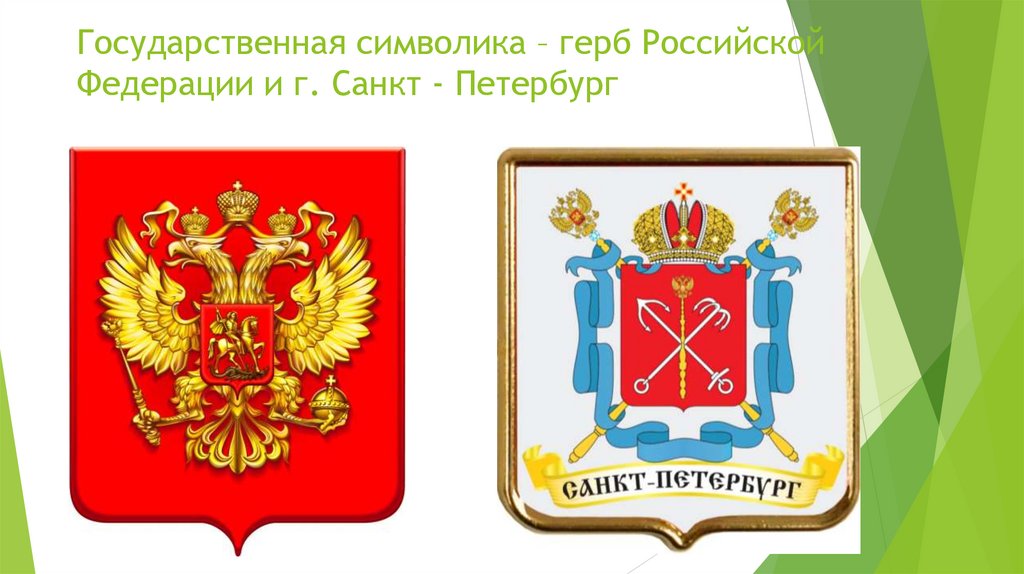 Государственная символика – герб РоссийскойФедерации и г. Санкт - Петербург