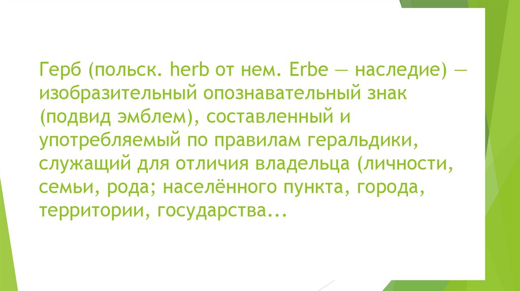 Герб (польск. herb от нем. Erbe — наследие) —изобразительный опознавательный знак