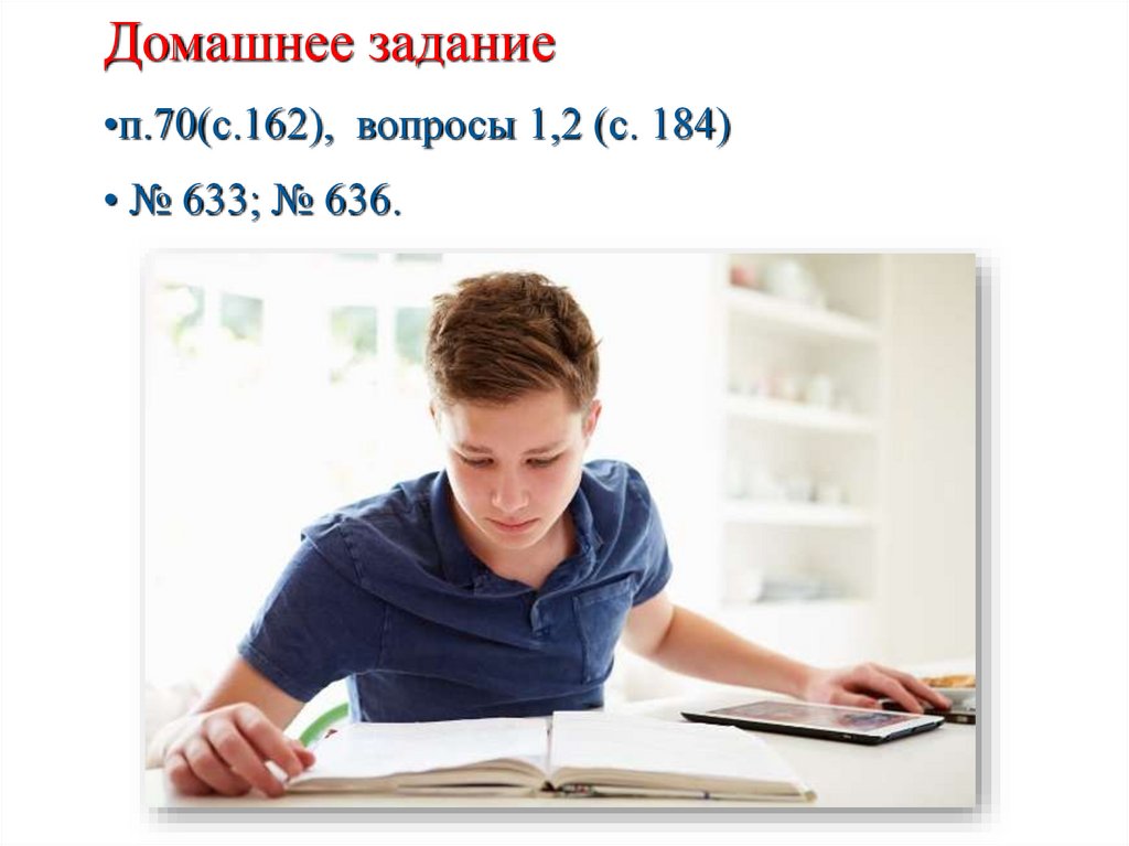 Домашнее задание•п.70(с.162), вопросы 1,2 (с. 184)