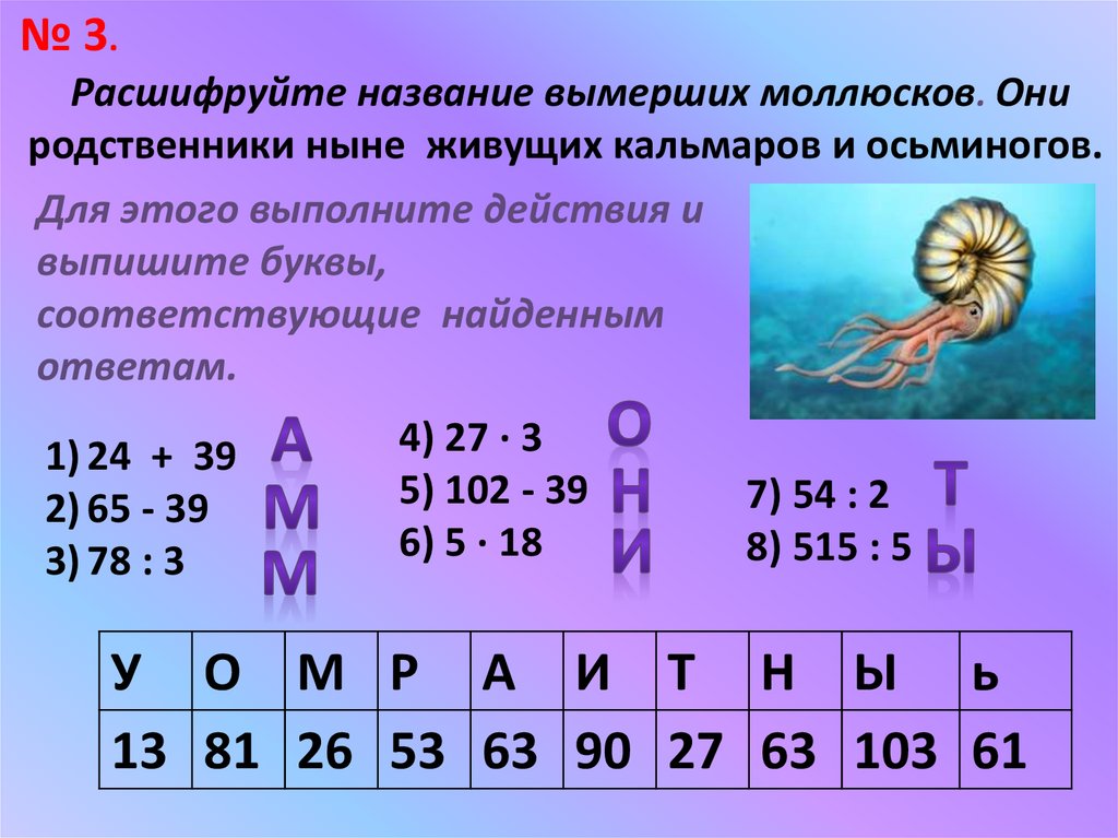 № 3.Расшифруйте название вымерших моллюсков. Они