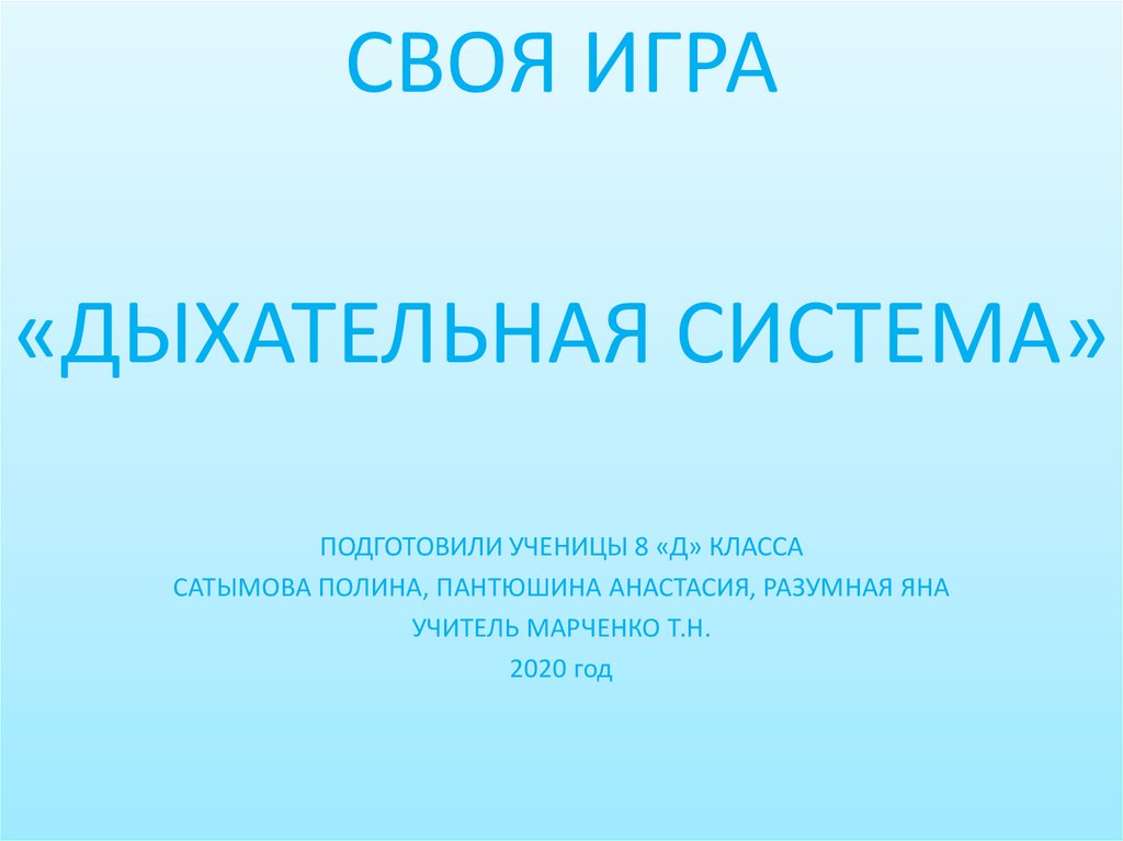 СВОЯ ИГРА«ДЫХАТЕЛЬНАЯ СИСТЕМА»