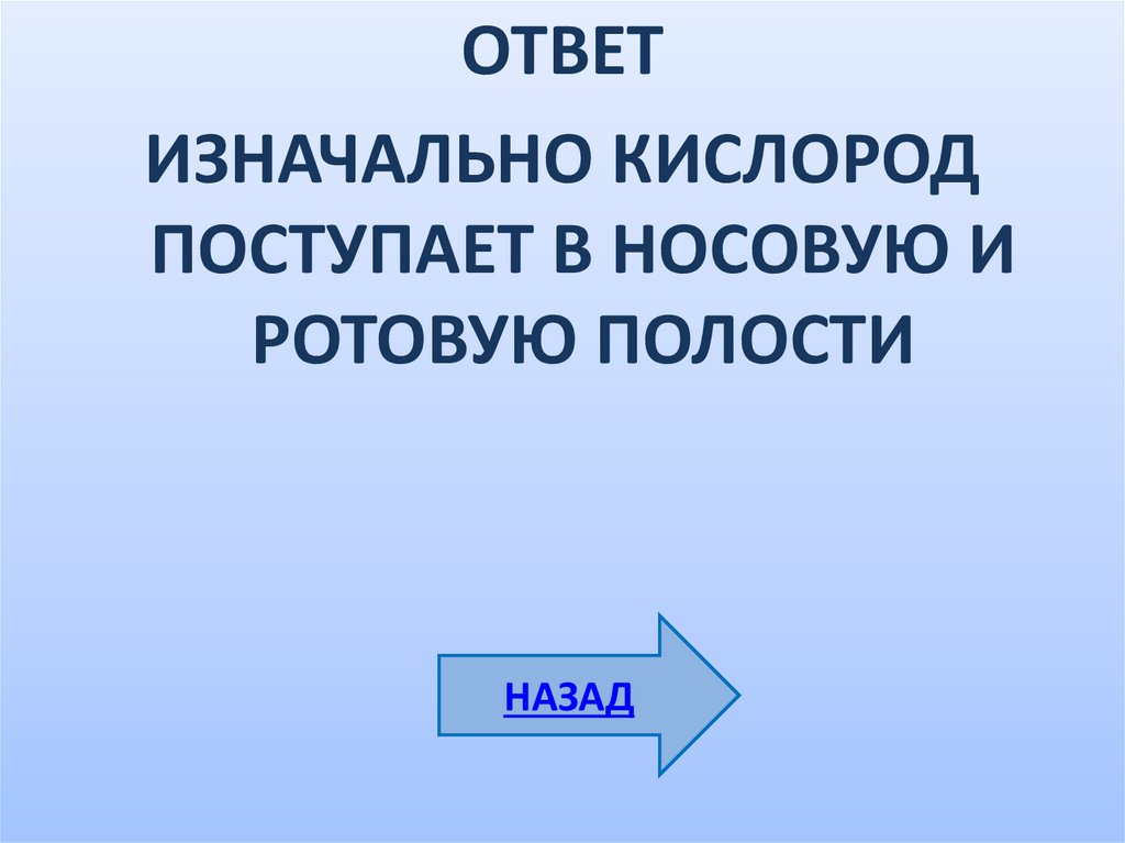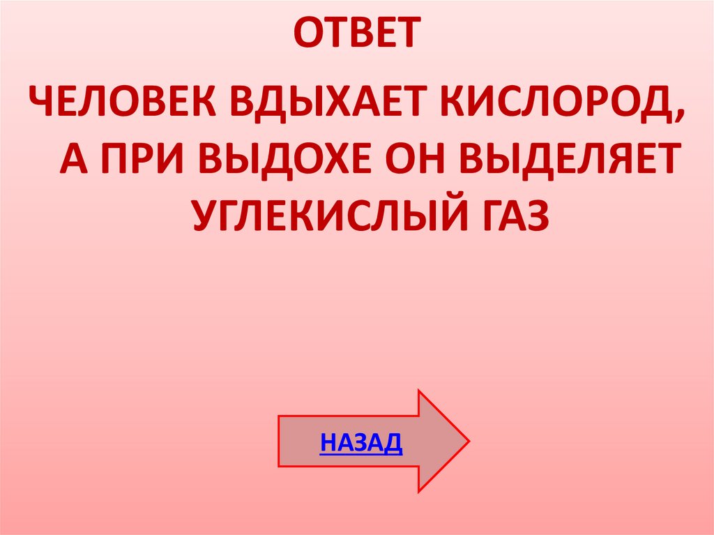 ОТВЕТЧЕЛОВЕК ВДЫХАЕТ КИСЛОРОД,