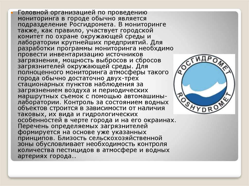 маршрутных съемок с помощью автомашинылаборатории. Контроль за состоянием водных
