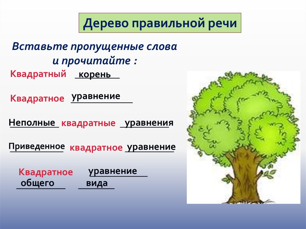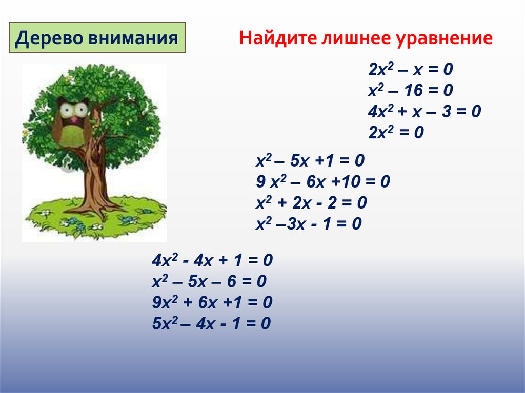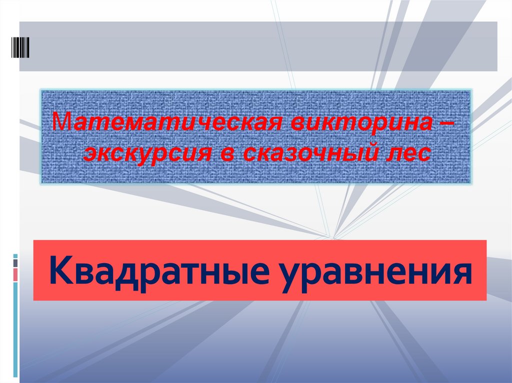 Математическая викторина - экскурсия в сказочный лес. Квадратные уравнения