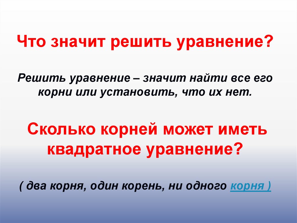 Что значит решить уравнение?Решить уравнение – значит найти все его
