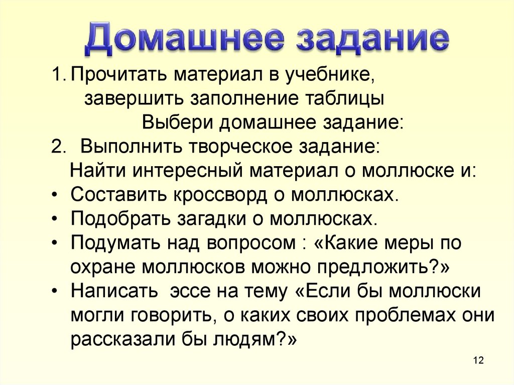 Классы моллюсков. Многообразие.Их значение в природе и жизни человека.