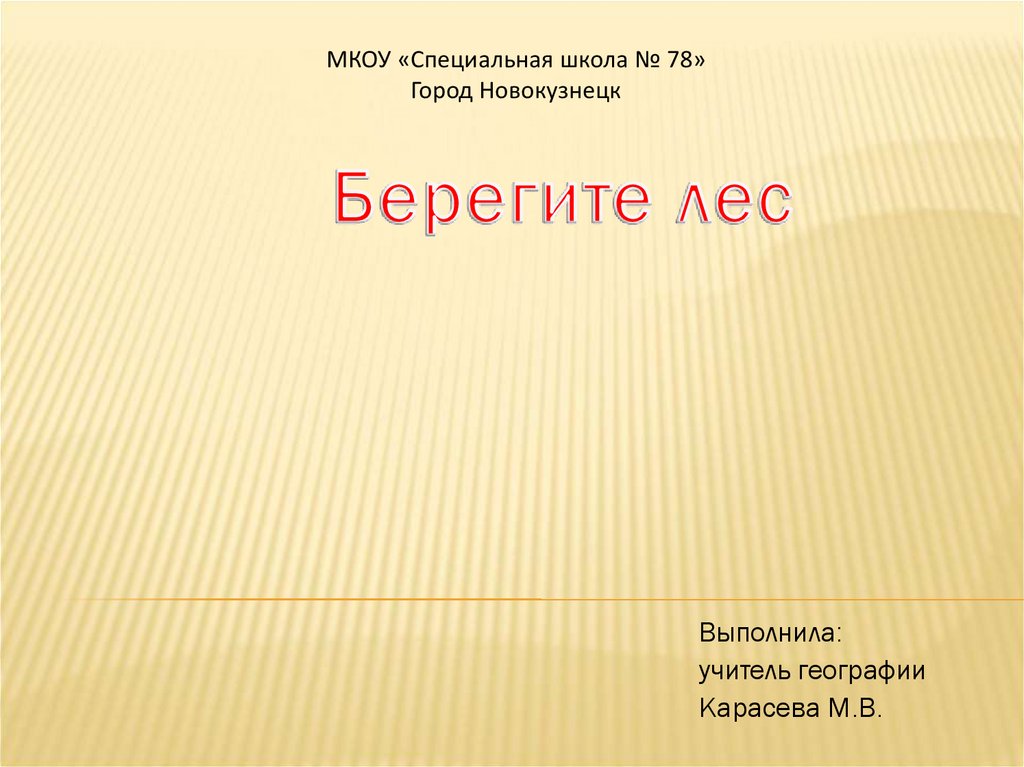 МКОУ «Специальная школа № 78»Город Новокузнецк