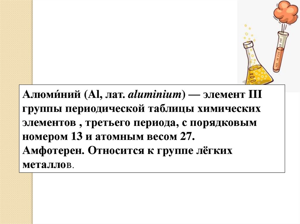 Алюми́ний (Al, лат. aluminium) — элемент IIIгруппы периодической таблицы химических