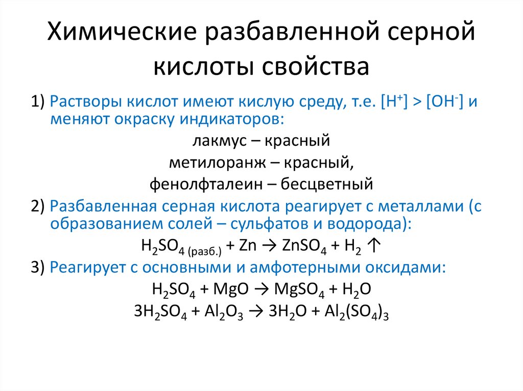 H2SO4 (разб.) + Zn → ZnSO4 + H2 ↑