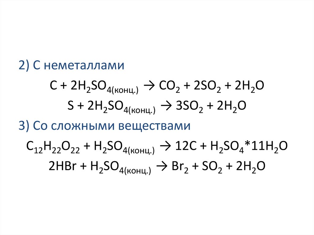 2) С неметалламиC + 2H2SO4(конц.) → CO2 + 2SO2 + 2H2O