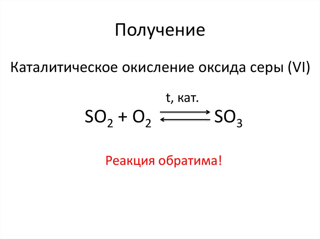 ПолучениеКаталитическое окисление оксида серы (VI)