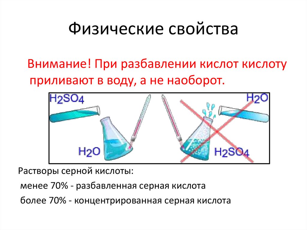 Физические свойстваВнимание! При разбавлении кислот кислоту
