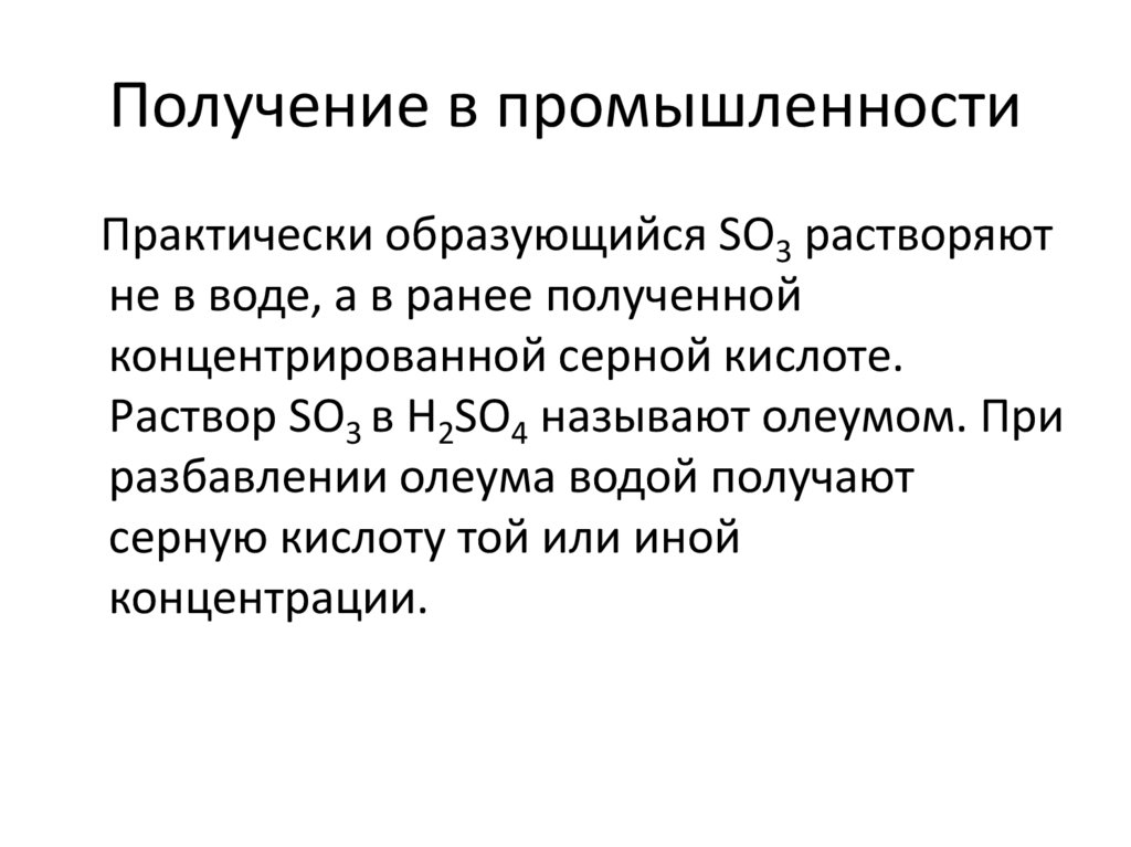 Получение в промышленностиПрактически образующийся SO3 растворяют