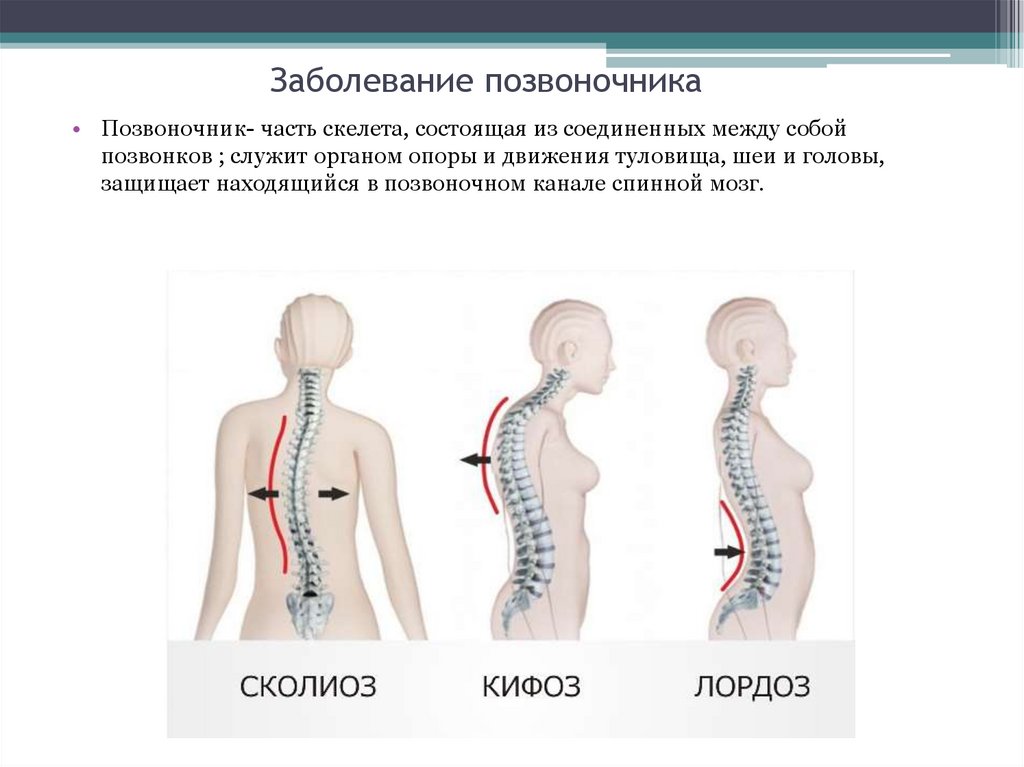 Заболевание позвоночника• Позвоночник- часть скелета, состоящая из соединенных между собой