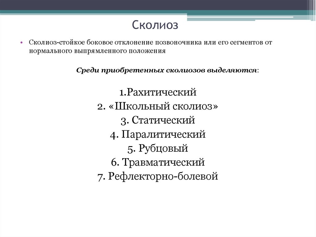 Среди приобретенных сколиозов выделяются: