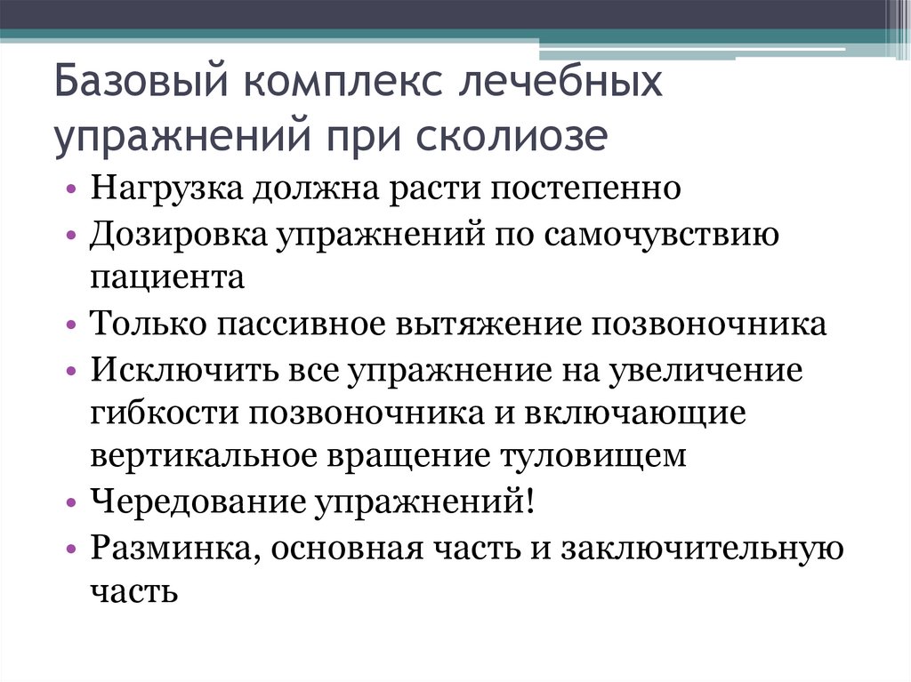 Базовый комплекс лечебныхупражнений при сколиозе