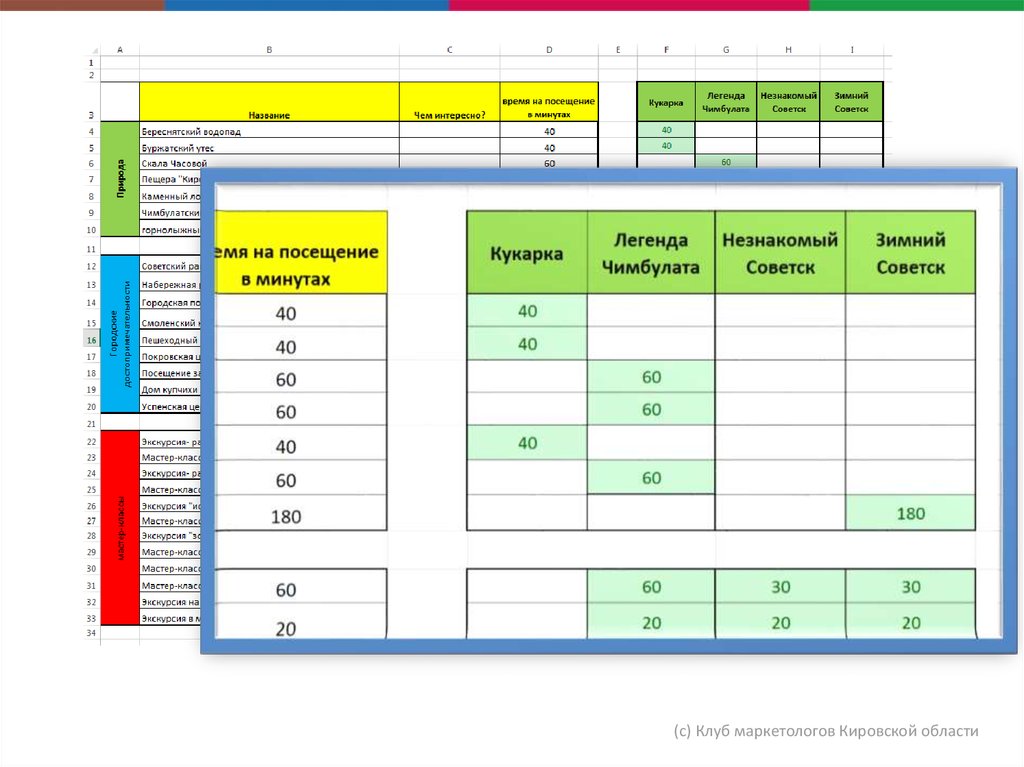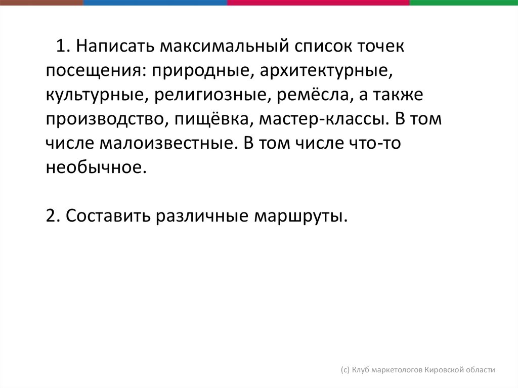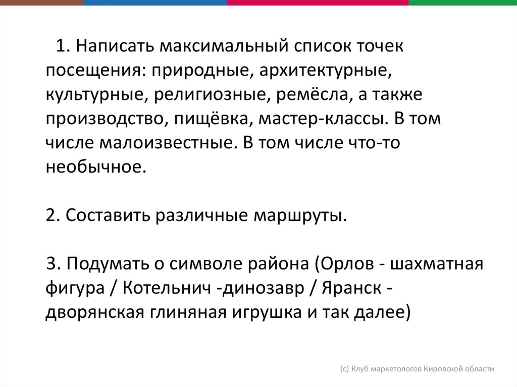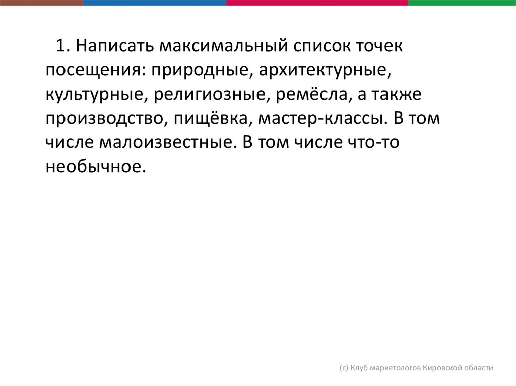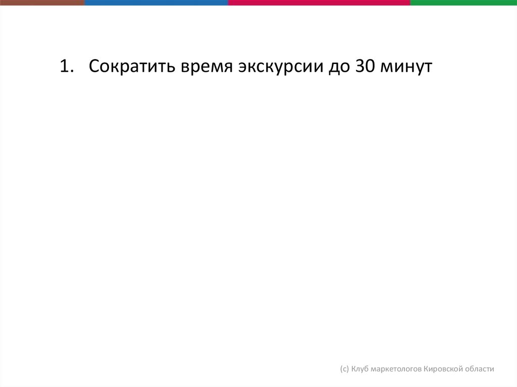 1. Сократить время экскурсии до 30 минут(с) Клуб маркетологов Кировской области