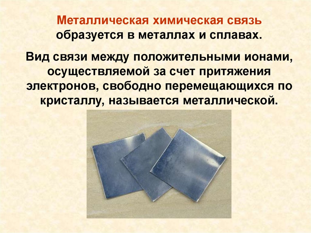 Металлическая химическая связьобразуется в металлах и сплавах.