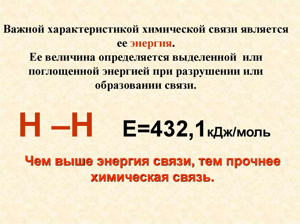 Важной характеристикой химической связи являетсяее энергия.