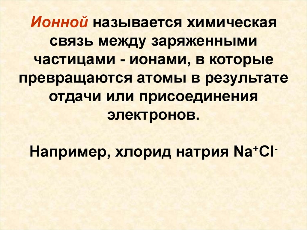 Ионной называется химическаясвязь между заряженными