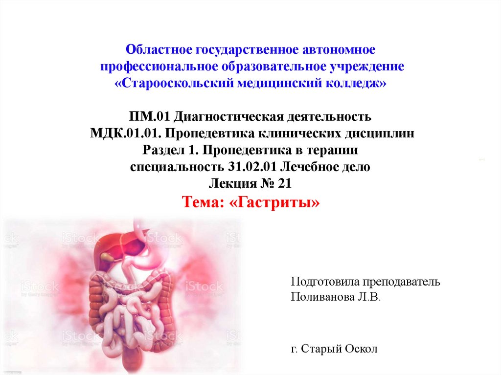Домашнее заданиеСамостоятельно изучить тему: «Язвенная болезнь»