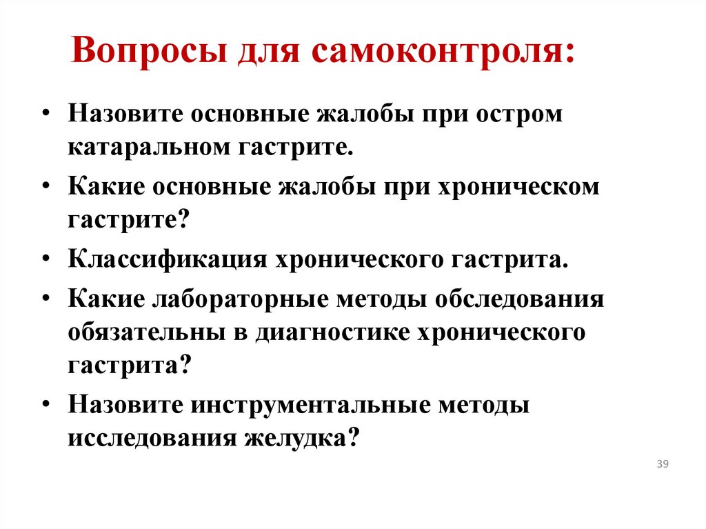 Вопросы для самоконтроля:• Назовите основные жалобы при остром