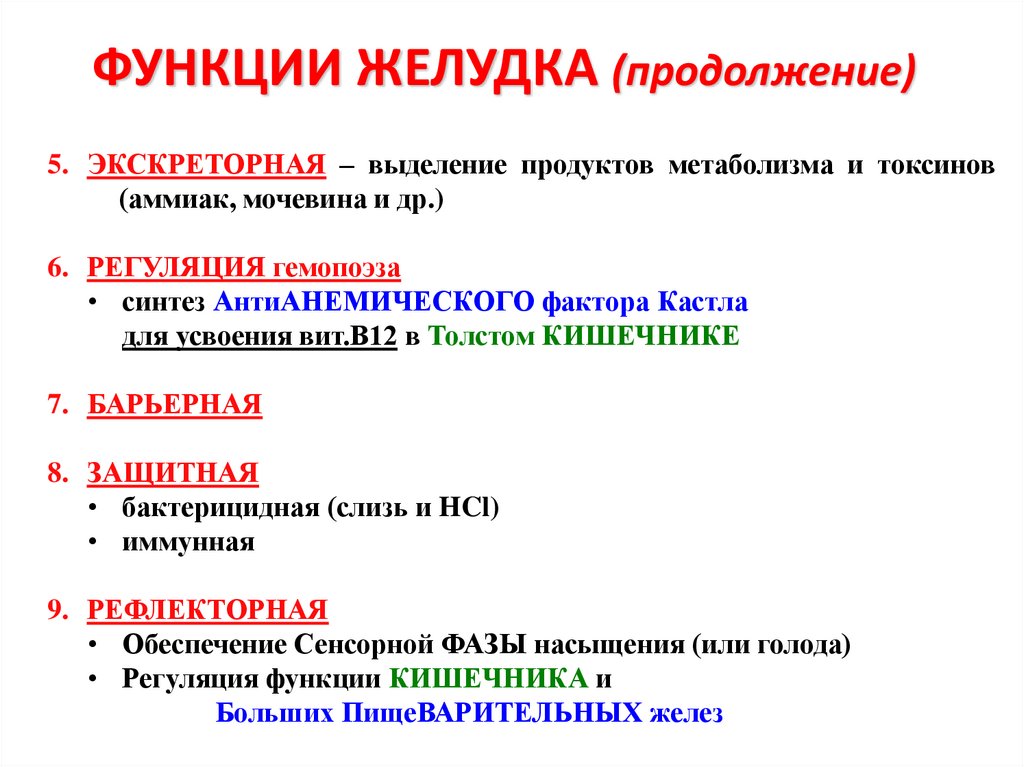 ФУНКЦИИ ЖЕЛУДКА (продолжение)5. ЭКСКРЕТОРНАЯ – выделение продуктов метаболизма и токсинов