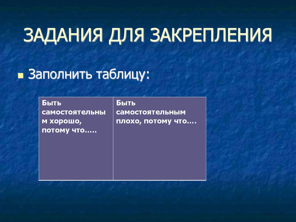 ЗАДАНИЯ ДЛЯ ЗАКРЕПЛЕНИЯЗаполнить таблицу: