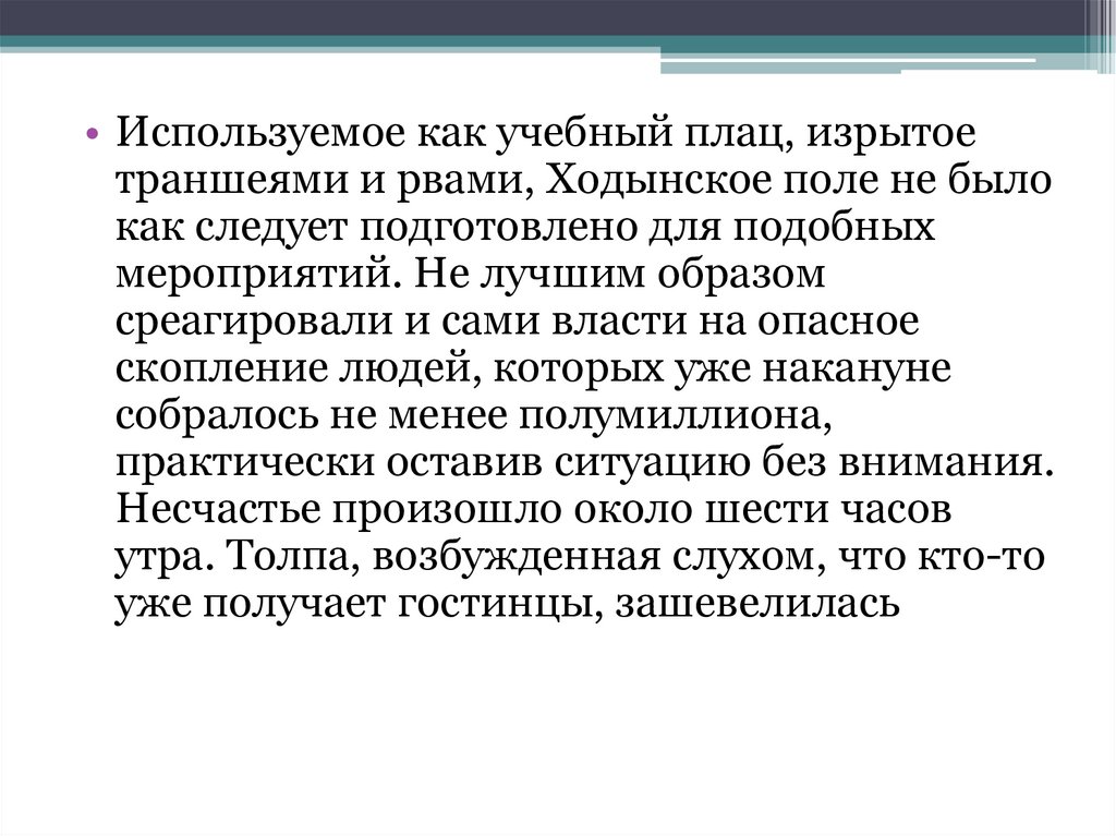 • Используемое как учебный плац, изрытоетраншеями и рвами, Ходынское поле не было