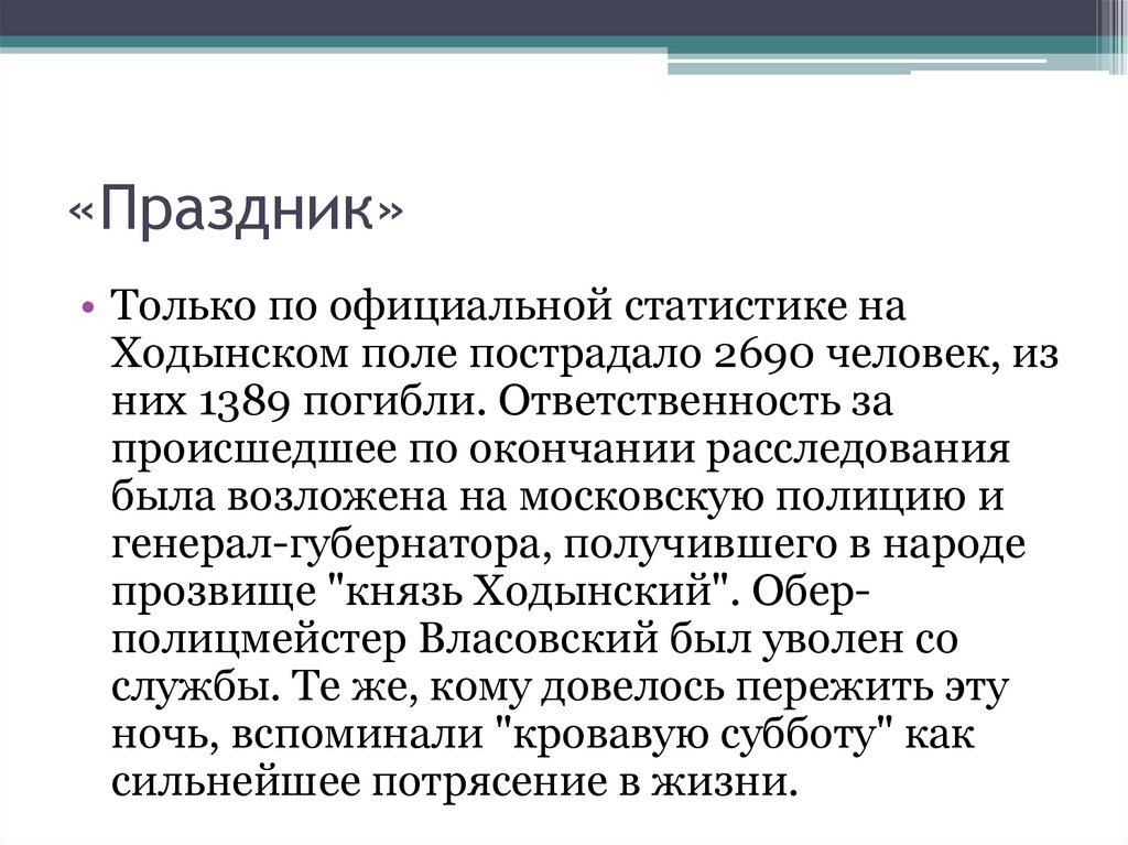 прозвище "князь Ходынский". Оберполицмейстер Власовский был уволен со