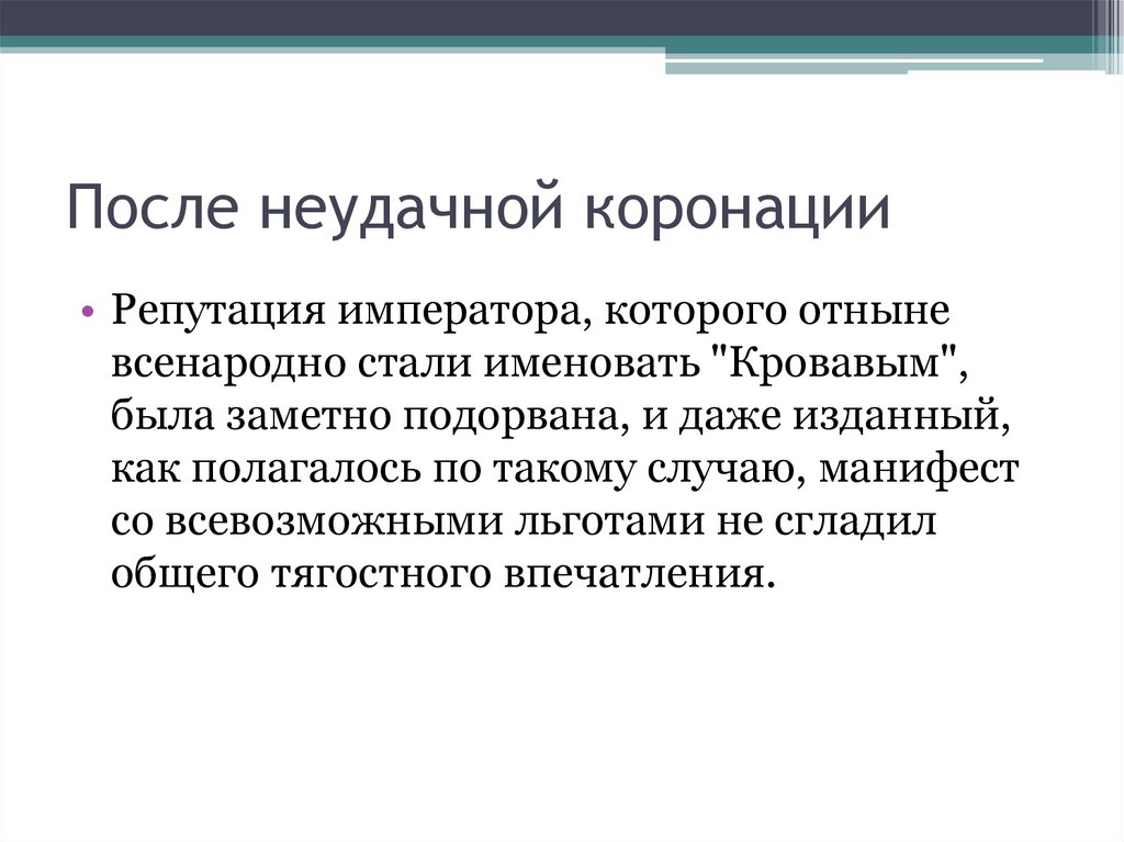 После неудачной коронации• Репутация императора, которого отныне