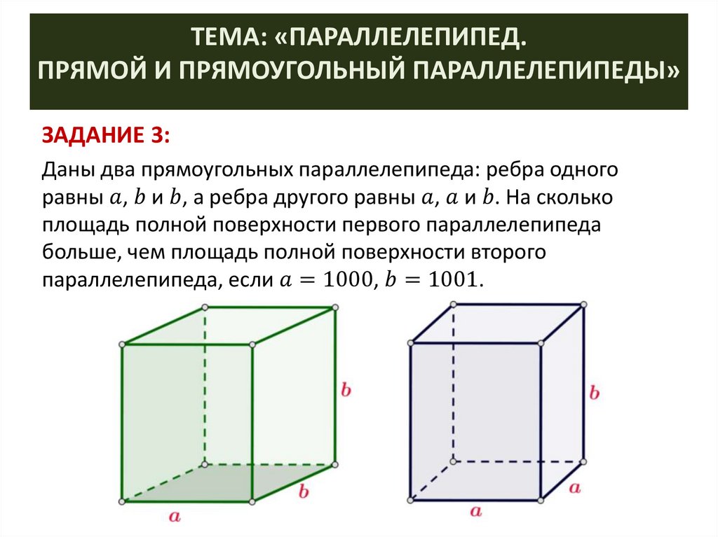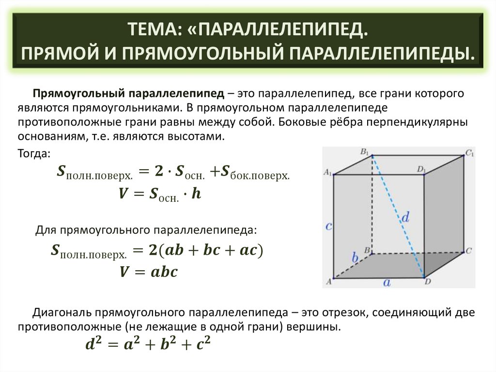 Параллелепипед. Прямой и прямоугольный параллелепипеды